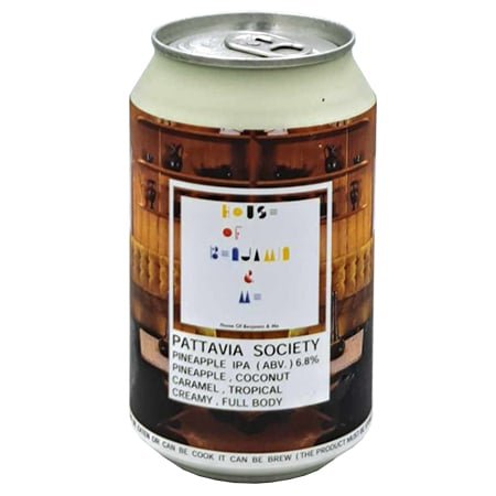 Pattavia Society ตัวนี้เป็น Pineapple IPA ที่ออกแบบมาให้คล้าย Pina Colada โดยเลือกใช้มอลต์ Caramel สีอ่อนไม่เข้มมากสองตัว เพื่อสร้างความสมดุลย์และ Mouthfeel ที่ดี ยีสต์ M44 เจ้าประจำ ในส่วนของ Hops เลือกมาเป็น El Dorado , Idaho 7 , Idaho Gem และ Dry Hops เพิ่ม ช่วง Ferment อีก 2 ตัว สุดท้ายขับความฉ่ำหวานด้วย สัปปะรดปัตตาเวียผลไม้ของบ้านเรากับมะพร้าวคั่วให้ความ Creamy นำไป Sousvide กับ White Rum ของแบรนด์ ซอดแจ้ง สุรากลั่นชุมชนของไทยเรา ได้ออกมาเป็น IPA สัปปะรด ฉ่ำๆ ครีมๆมะพร้าว และยังชูความ Tropical Fruits โดยมีสัปปะรดเมืองร้อนเป็นพระเอก